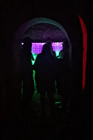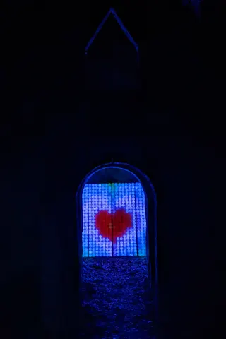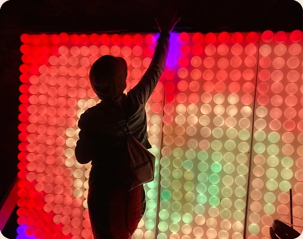 The kinect was used to track the movement of people in front of the wall and the fadecandys