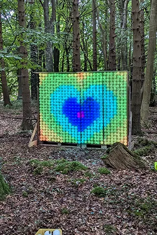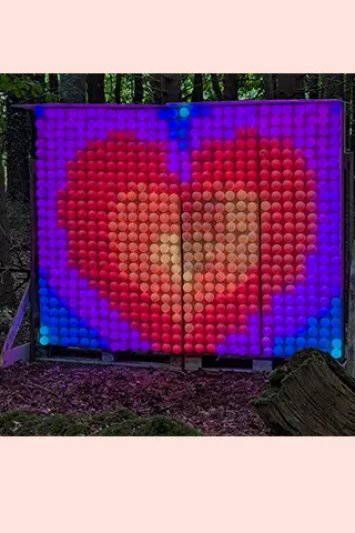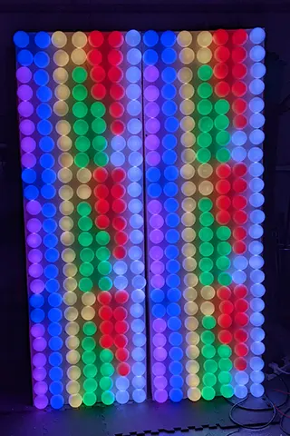 The project used an 2 fadecandys, 672 LEDs, 672 ball pit balls and a xbox kinect.